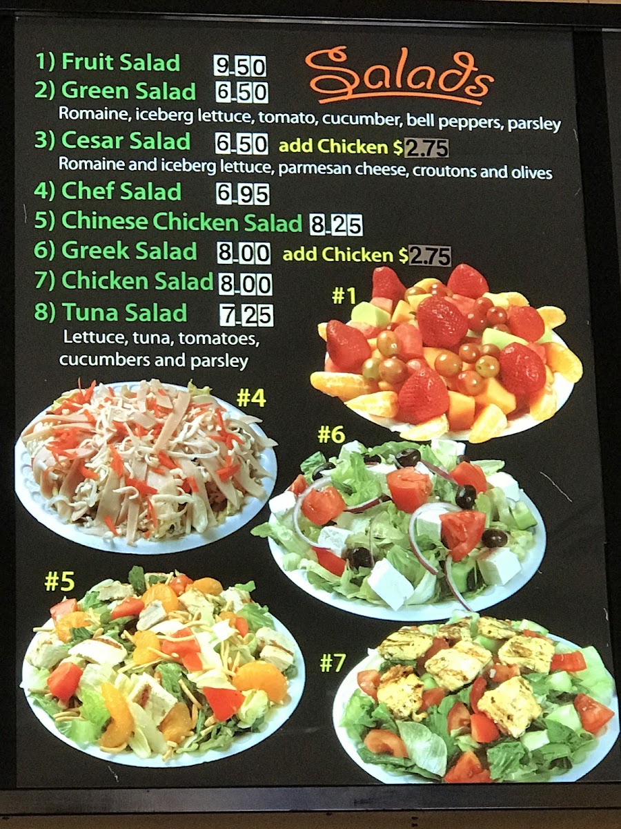 Lettuce, grilled chicken, toasted almonds,mandarin halves, topped with oriental dressing and noodles.