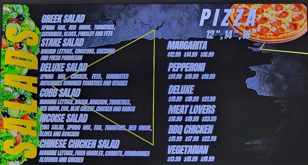 Steak, mushrooms, bell peppers and mozzarella cheese. Full sandwich, side of choice and a drink.